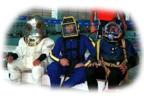 demonstração utilizando um equipamento Mk V, o tradicional escafandro.
